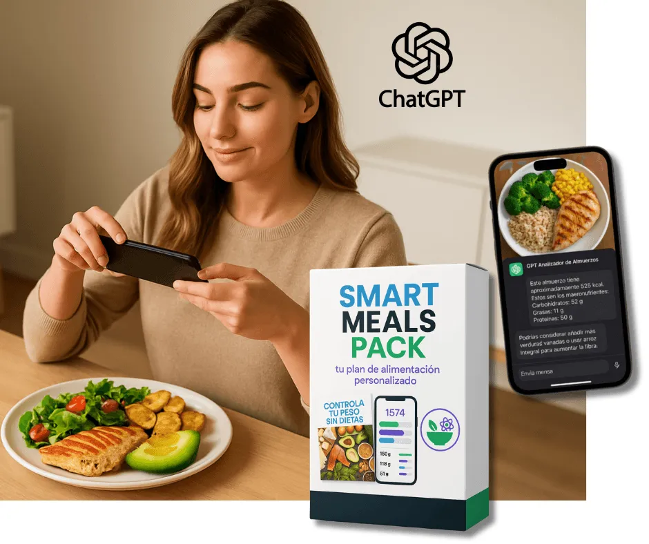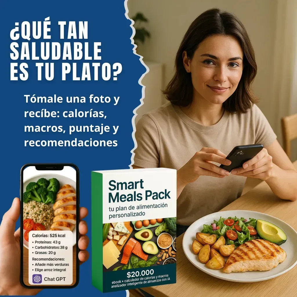 Ya no sigas adivinando si tu almuerzo te está ayudando o perjudicando. Con Smart Meals Pack sabrás exactamente qué estás comiendo, qué mejorar y cómo empezar a ver cambios reales desde hoy